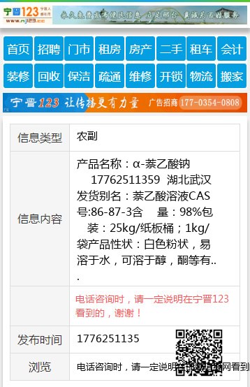 产品名称:α-萘乙酸钠 17762511359 湖北武汉发货 别名:萘乙酸溶液 CAS号:86-87-3 含 量:98% 包 装:25kg/纸板桶;1kg/袋 产品性状:白色粉状,易溶于水,可溶于醇,酮等有机溶剂.