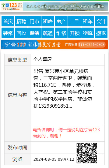 出售 复兴苑小区单元楼房一套,三室两厅两卫,建筑面积116.71㎡,四楼,步行梯,大产权。第二实验学校和实验中学的双学区房。非诚勿扰13293091851