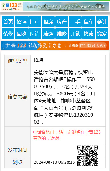 免责声明:本栏目信息由网友自行发布,邯郸信息网不承担任何责任!提高警惕,谨防诈骗!做推广、做信息置顶!请加邯郸信息网客服微信:cnxingtai