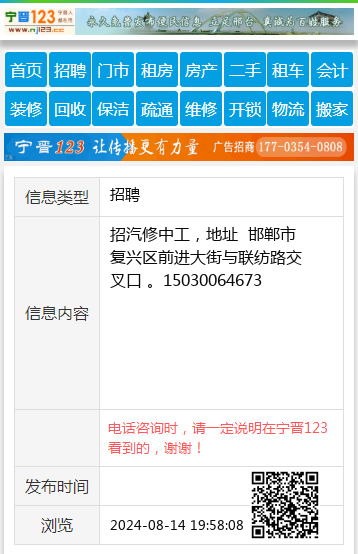 电话咨询时,请一定说明在邯郸信息网看到的,谢谢!