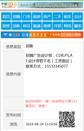 招聘广告设计师,CDR,PS,AI 设计师若干名(工资面议)联系方式;15533345077