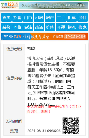 博冉珠宝(南红玛瑙)店诚招抖音带货女主播,不需要露脸,年龄18-50岁,有销售经验者优先!底薪加高提成;月薪过万,时间自由,每天工作四小时以上,工作地点邯郸市邯山区赵都新城附近。有意者请致电李女士19333267271