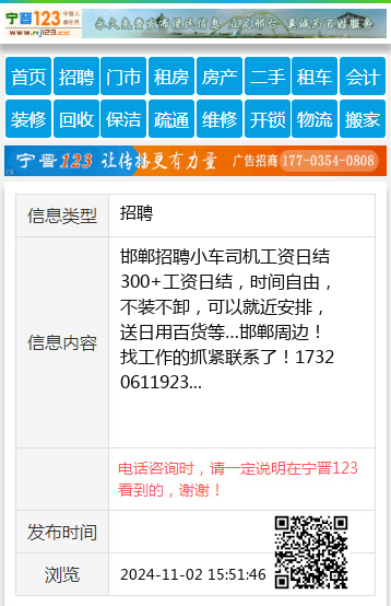 邯郸招聘小车司机工资日结300+ 工资日结,时间自由,不装不卸,可以就近安排,送日用百货等…邯郸周边!找工作的抓紧联系了! 17320611923