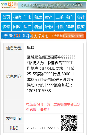 区域服务经理招募中????????招聘人数:限额5名????工作地点:肥乡⛳️要求:年龄25-55周岁????待遇:3000-10000????无责底薪+绩效+保险+培训 ????报名热线:18031015588