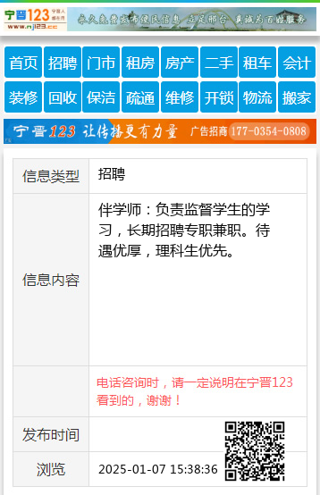 伴学师:负责监督学生的学习,长期招聘专职兼职。待遇优厚,理科生优先。