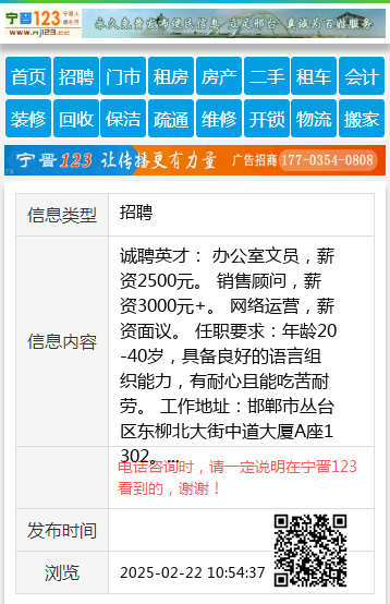 免责声明:本栏目信息由网友自行发布,邯郸信息网不承担任何责任!提高警惕,谨防诈骗!做推广、做信息置顶!请加邯郸信息网客服微信:cnxingtai