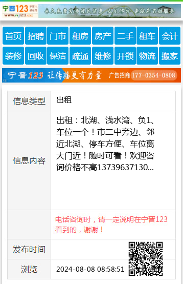 出租:北湖、浅水湾、负1、车位一个!市二中旁边、邻近北湖、停车方便、车位离大门近!随时可看!欢迎咨询价格不高13739637130
